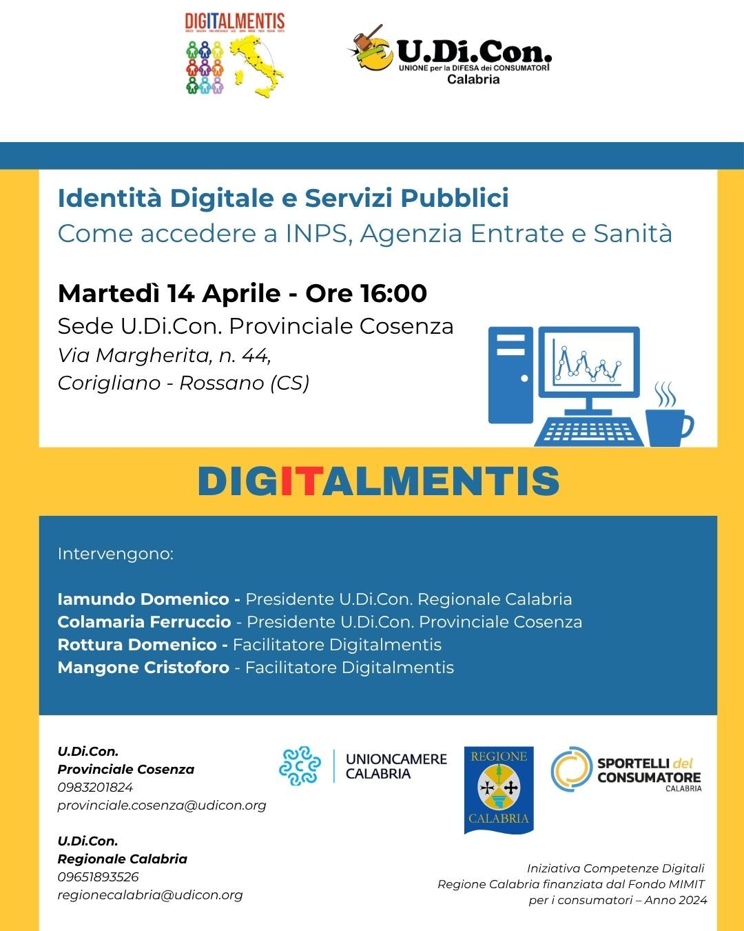 L’appuntamento è in programma martedì 14 aprile alle ore 16.00 presso la sede U.Di.Con. Provinciale Cosenza, in Via Margherita n. 44, Corigliano-Rossano (CS).